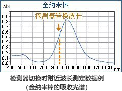 切換檢測器波長時會產生小的信號差異,即使這樣UH4150也可實現高精度的測定。