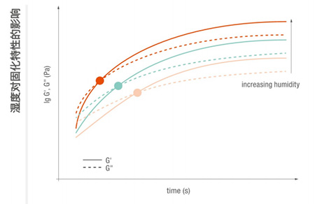 環(huán)境濕度會顯著影響窗口期、凝膠化時間和固化過程。在此處,增加濕度會加速固化過程,濕度越高,達(dá)到凝膠點的時間式越早。