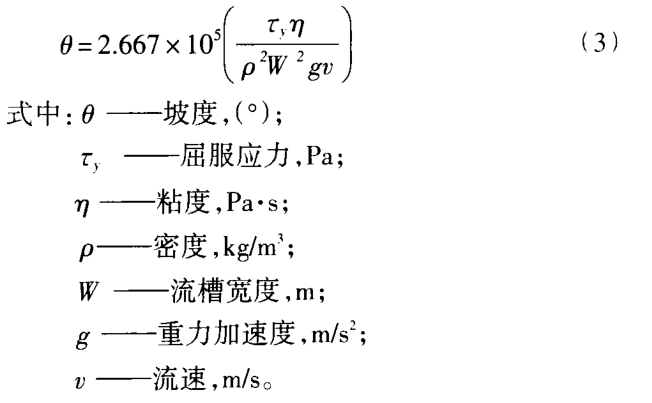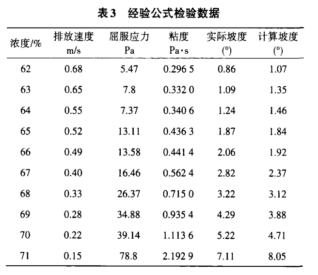 4、膏體自流坡度經(jīng)驗(yàn)公式檢驗(yàn)