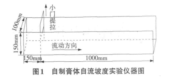 分別測量不同濃度條件下膏體自流的坡度 ,流速等參數(shù) ,研究其流動(dòng)性能[3-4]。
