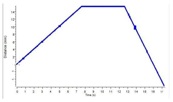 顯示了探頭在測試石蠟時候的位移與時間的關(guān)系。