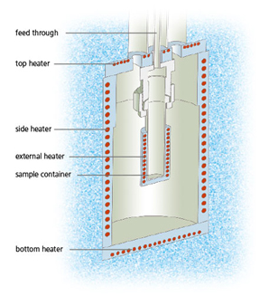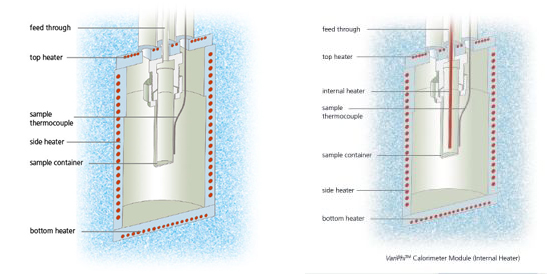 在管狀或球形容器中放置若干毫升的樣品。容器由完整的框架加熱系統(tǒng)所圍繞。在大多數(shù)測量模式下,框架加熱系統(tǒng)的溫度控制在與樣品溫度相同。此時在外圍加熱器與樣品之間沒有溫差,樣品釋放的所有熱量將停留在樣品內(nèi)部(即模擬絕熱環(huán)境)。