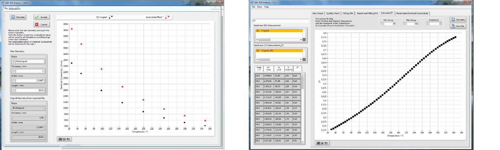 • 塞貝克系數(shù)與電導(dǎo)率曲線擬合,導(dǎo)入 LFA 的熱導(dǎo)率數(shù)據(jù),最終計(jì)算 ZT 值