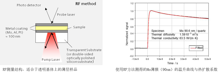 除了 RF 方法之外,測(cè)量也可以使用前部加熱/前部探測(cè)(FF)的結(jié)構(gòu)進(jìn)行。“Front”一詞這里指的是沉積于基體上的薄膜的外表面,而“Rear”一詞指的是薄膜與基體接觸的一面。