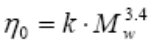 在外推測試曲線過程中,計算的粘度曲線的誤差不能忽略。因此外推只能用在已知趨勢的曲線上進行。在零剪切粘度區(qū)域,高粘度意味著更高的平均分子量。零剪切粘度與平均分子量成正比:
