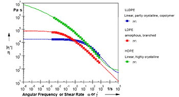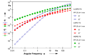 正如所看到的那樣,聚乙烯熔體的頻率掃描可以給出以下信息: