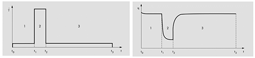 當(dāng)材料必須在不同的剪速下使用時,先了解操作剪速下的粘度行為是基本的,如果你不了解這些行為,至少需先做估計,粘度應(yīng)該要在預(yù)估的剪切速率值與實際值相近下測量才有意義。